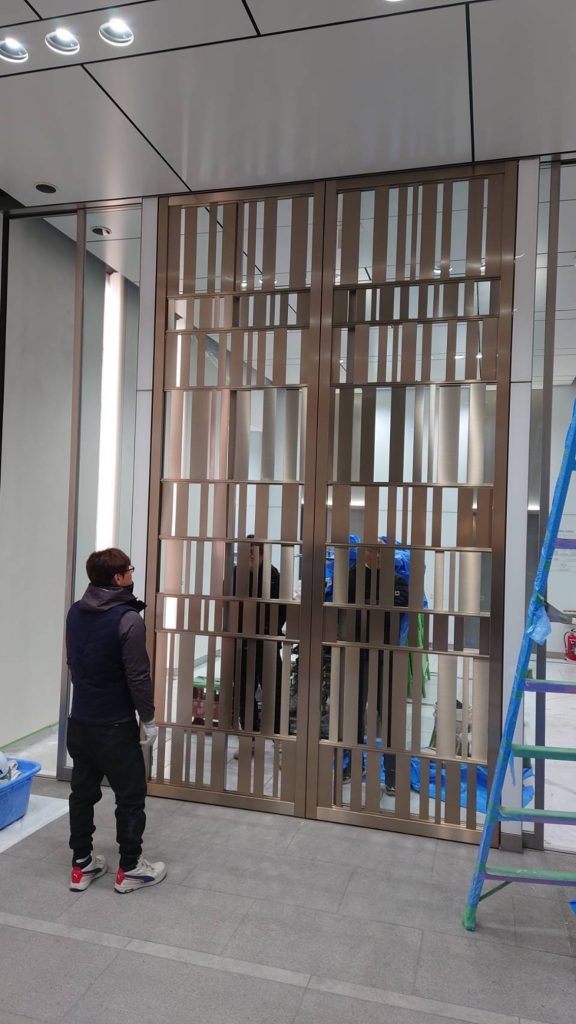 銀座、エントランス大型ヒンジドア、